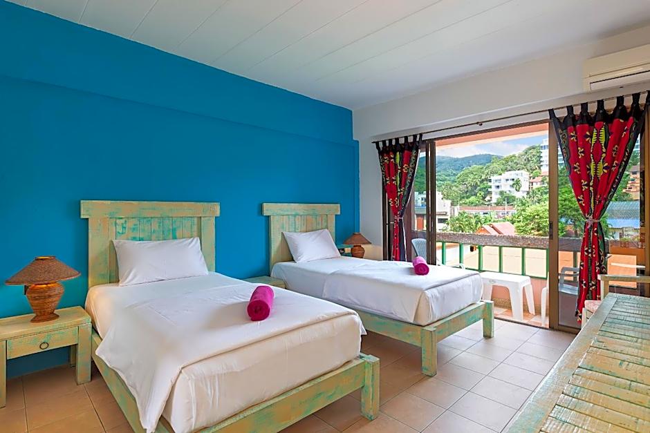 Room options span a Double Room with Pool View, a Duplex, and Standard configurations such as No Air Conditioner, 1 Twin, 2 Twin, and Standard 1 Double Bed. All listed room types indicate non-smoking, aligning with the relaxing, low-key vibe. The property holds a 2-star rating and has 340 reviews, offering a dependable budget-friendly base for Phuket adventures.
